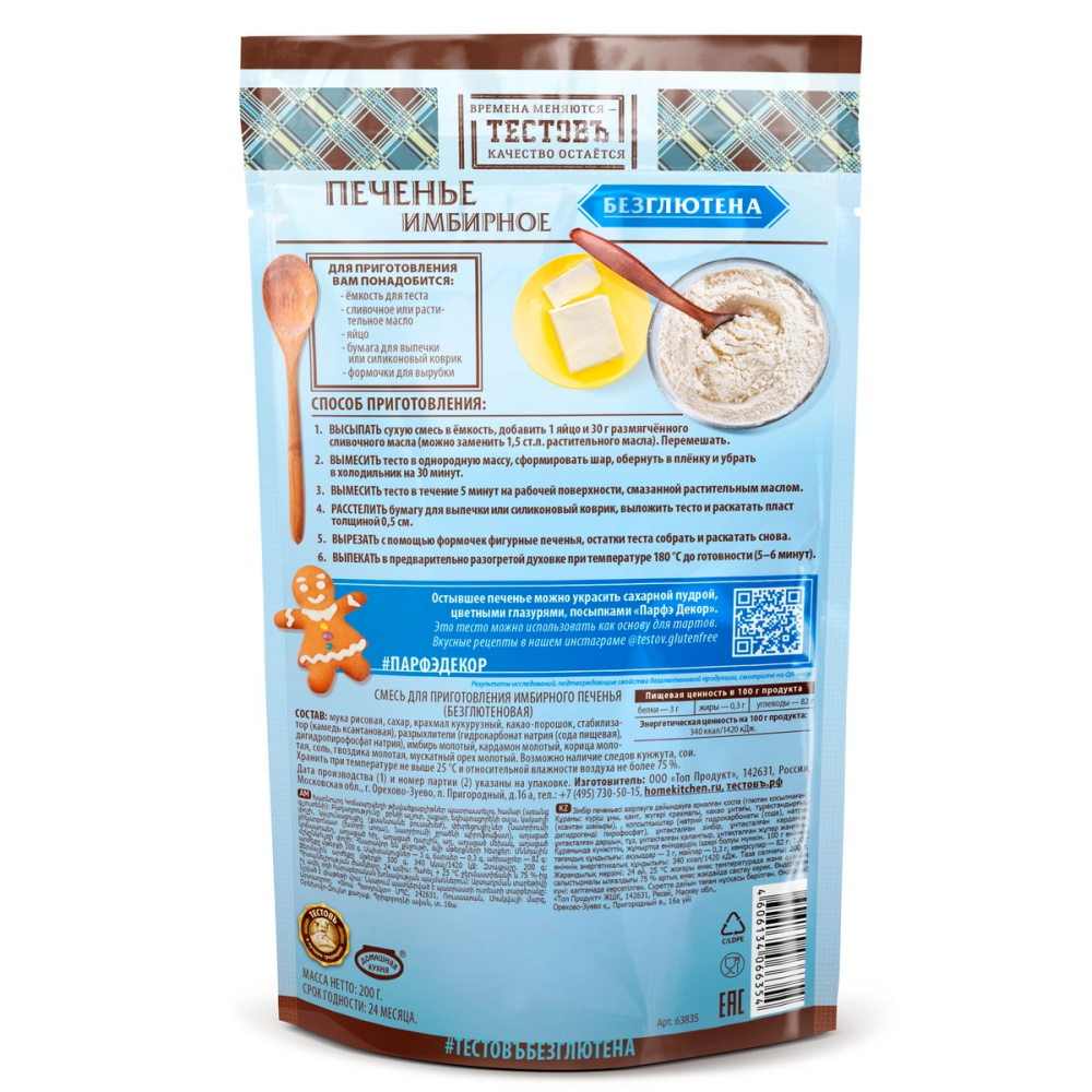 Состав продукта: мука рисовая, сахар, крахмал кукурузный, какао-порошок, стабилизатор (камедь ксантановая), разрыхлители (гидрокарбонат натрия (сода пищевая), дигидропирофосфат натрия), имбирь молотый, кардамон молотый, корица молотая, соль, гвоздика молотая, мускатный орех молотый. Возможно наличие следов кунжута, сои.
