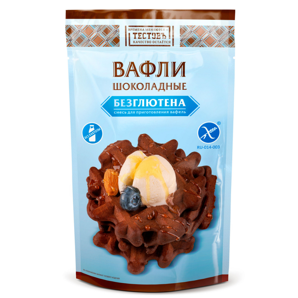Состав продукта: мука рисовая, крахмал кукурузный, сахар, какао-порошок, соль, разрыхлители (гидрокарбонат натрия (сода пищевая), дигидропирофосфат натрия), стабилизатор (камедь ксантановая), ароматизатор "Ванилин". Возможно наличие следов кунжута, сои.
