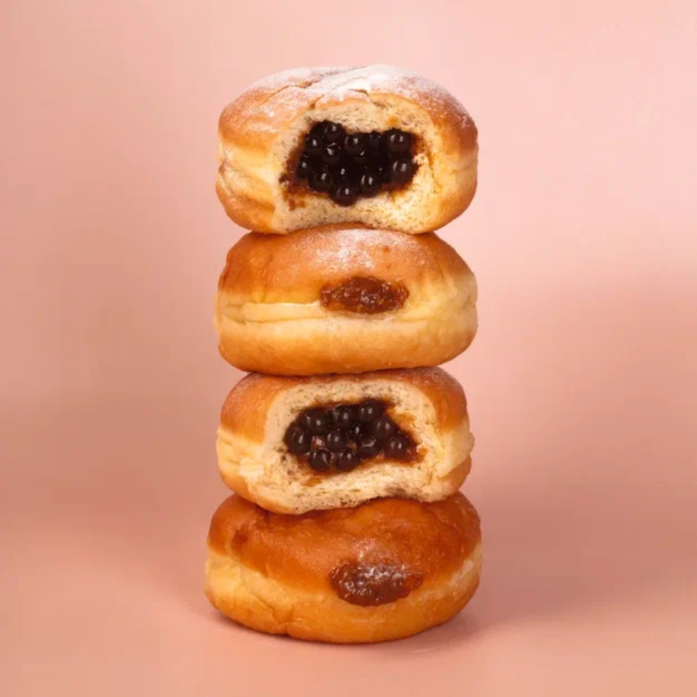 Внутри каждого пончика — джус баблс насыщенным вкусом браун-шугар. При укусе они лопаются, создавая яркий фруктовый акцент и необычную текстуру. Это не просто сладкая начинка, а настоящий взрыв вкуса, который делает десерт запоминающимся.