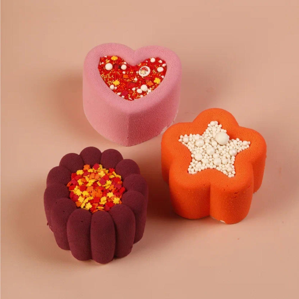 Нежные муссовые текстуры, лаконичная подача и проработанный декор делают эти торты не только вкусными, но и визуально привлекательными. Для оформления мы использовали осенние миксы посыпок и мягкий жемчужный микс, который добавляет благородное сияние и подчёркивает сезонное настроение.