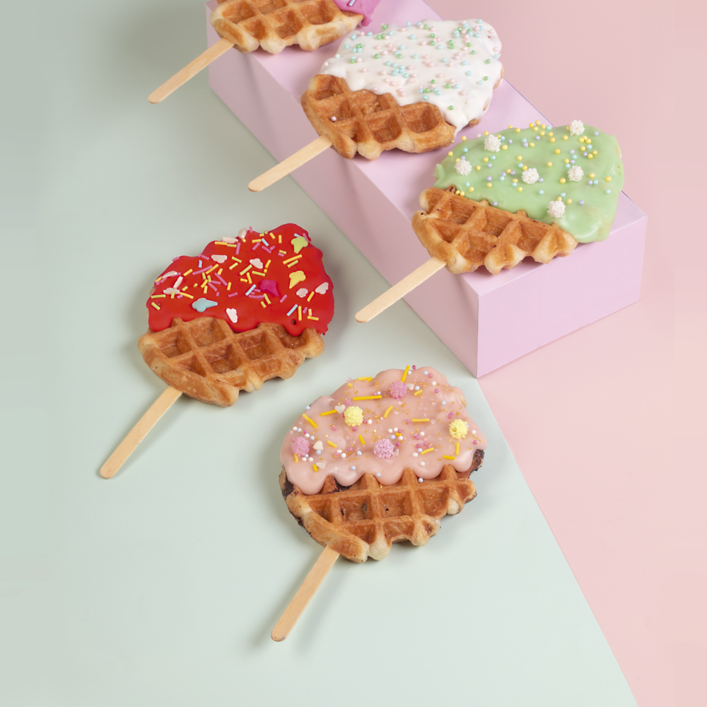 Летние вафли - идея, вдохновленная десертами формата “to go”. Яркие нежные вафли на палочке, потрясающее дополнение вашей летней прогулки в зеленом парке.