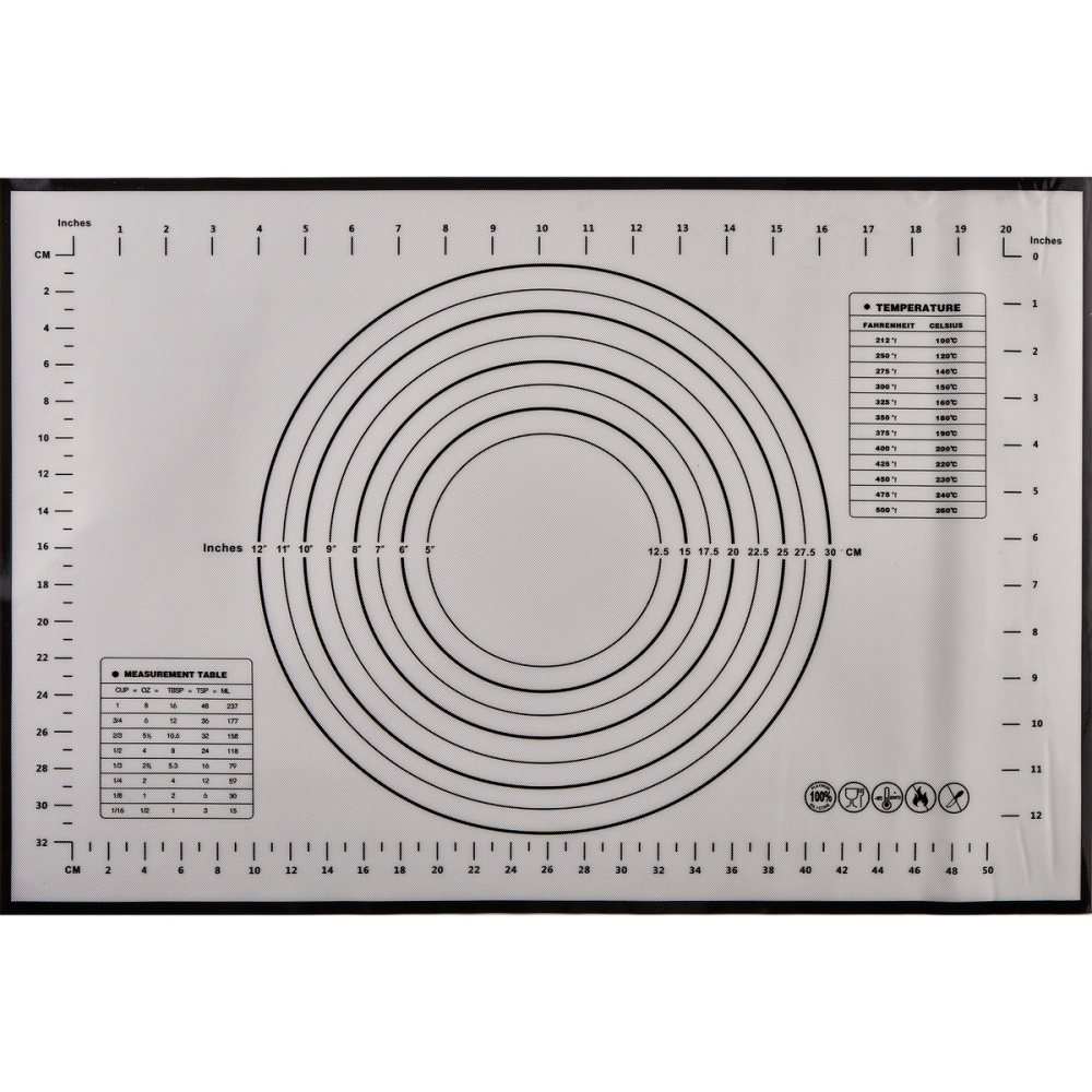 Состав: силикон Размеры: 59,5х39,5см Это вариант специальных поверхностей, предназначеных не для украшения, а для удобства работы. Ровные поверхности позволяют работать без потерь сырья, как для выпечки, так и для работы на столе с липкими материалами. Антипригарный. Выдерживают температуру от -50С до +230С. Коврик многократного использования, отлично моется проточной водой либо в посудомоечной машине с минимальным использованием неагрессивных моющих средств(X-002white)