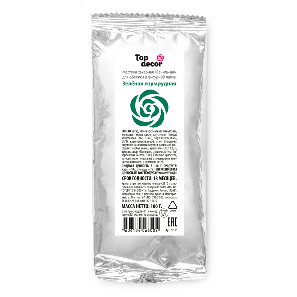 Сахарная мастика с тонким ароматом ванили — уникальный кондитерский полуфабрикат для декорирования изделий. Создана на основе эквивалента какао-масла, благодаря чему является универсальной массой для обтяжки тортов, фигурной лепки, а также для создания тонких элементов декора. Мастика легко окрашивается любыми пищевыми красителями, для создания перламутрового эффекта рекомендуется использовать сухой блестящий краситель. Ассортиментная линейка мастики представлена самыми актуальными оттенками, которые идеально смешиваются друг с другом, расширяя цветовую палитру для вашего творчества. Продаётся в фольгированных пакетах по 100 грамм. Способ применения: разогреть в руках необходимое количество мастики, размять на сухой, слегка подпыленной крахмалом поверхности (во избежание прилипания) до мягкой пластичной консистенции. По желанию добавить краситель или смешать с мастикой другого цвета, использовать для декорирования или лепки. Рекомендации по применению мастики для покрытия тортов: поверхность стола предварител