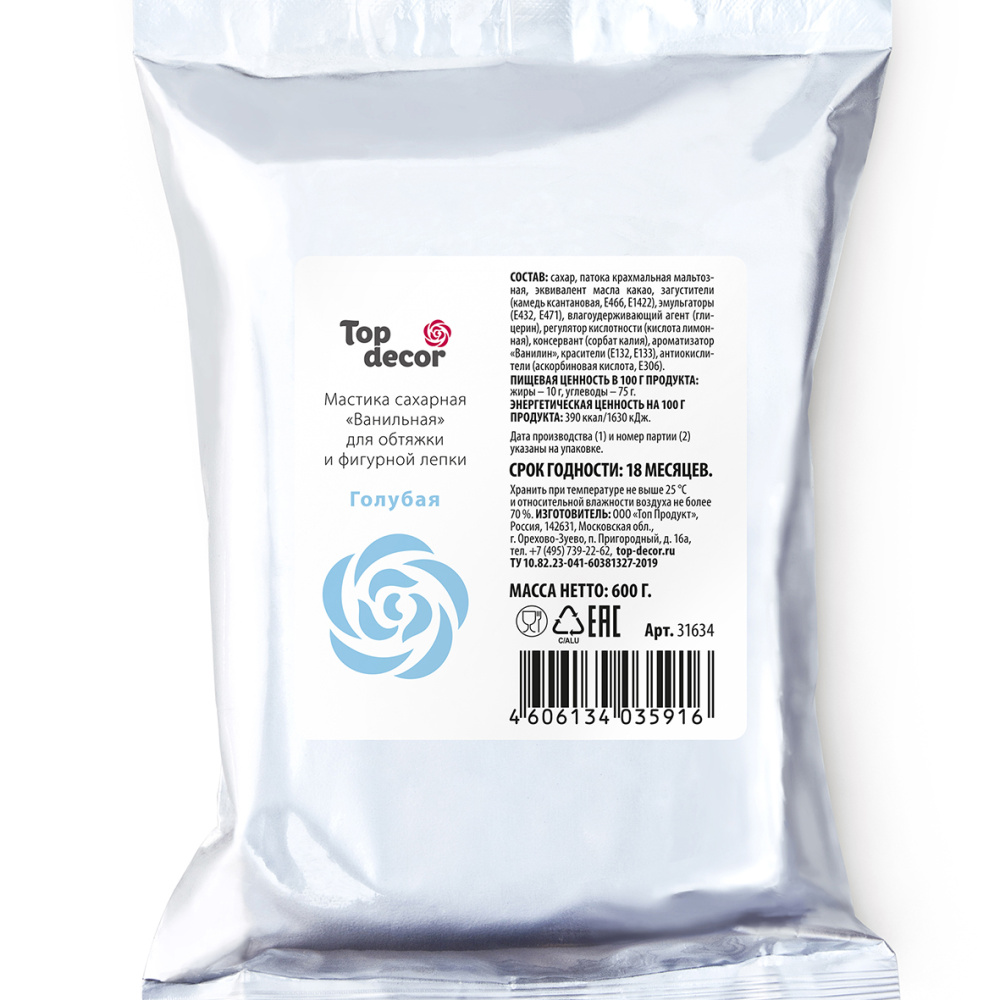 Мастика сахарная ванильная голубая 600г