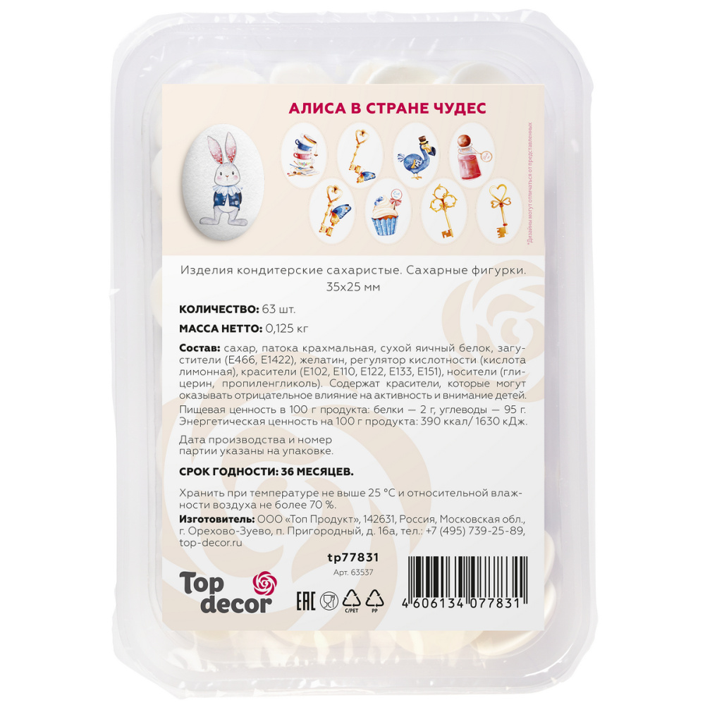 Сах.фигур.Медальоны АлисаВстранеЧудес,35х25мм,63шт