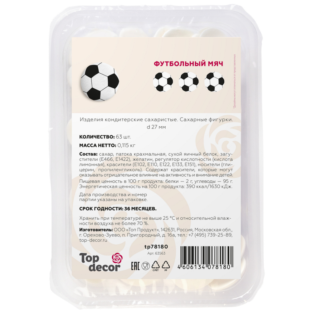 Сах.фигур.Медальоны Футбольный мяч, d27 мм, 63 шт