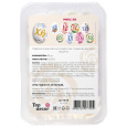 Состав: сахар, патока крахмальная, сухой яичный белок, загустители (Е466,Е1422),желатин, регулятор кислотности (к-та лимонная), красители пищевые (в ассортименте)