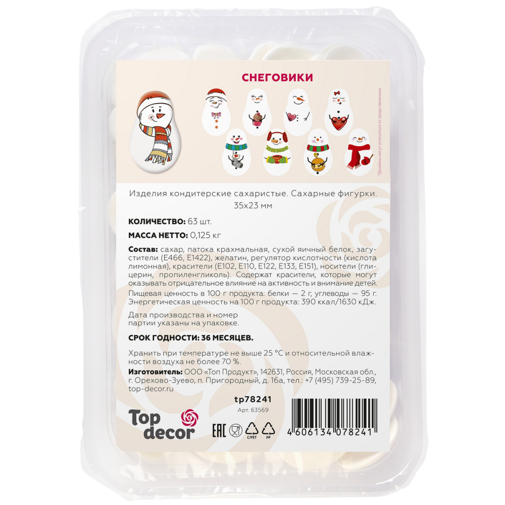 Сах.фигур.Медальоны Снеговики,35х23мм, 63 шт