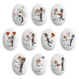 Состав: сахар, патока крахмальная, сухой яичный белок, загустители (Е466,Е1422),желатин, регулятор кислотности (к-та лимонная), красители пищевые (в ассортименте)