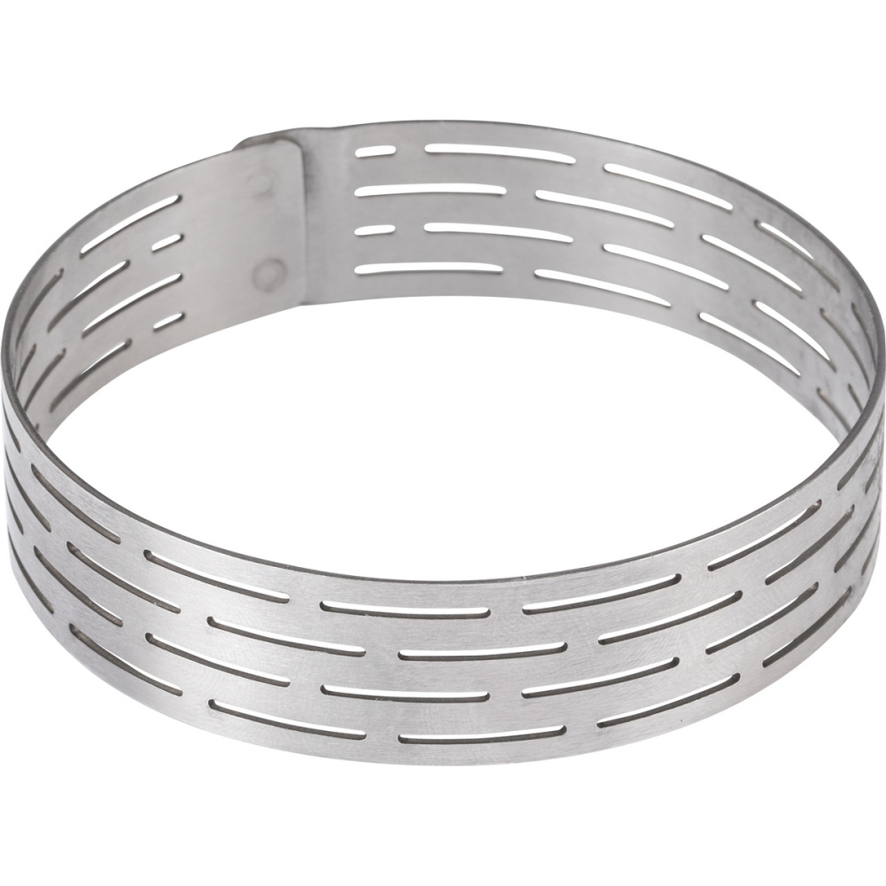 Перфорированная форма для выпечки теста изготовлена из пищевой нержавеющей стали. Перфорация обеспечивает равномерную циркуляцию воздуха и выводит излишнюю влагу, что делает выпечку однородной. Она также позволяет уменьшить риск подгорания и прилипания выпечки к стенкам. Диаметр формы составляет 8 см, высота 2 см, а толщина металла 1 мм. Она не изменяет вкуса изделий и устойчива к механическим повреждениям, что делает ее долговечной и удобной в эксплуатации.