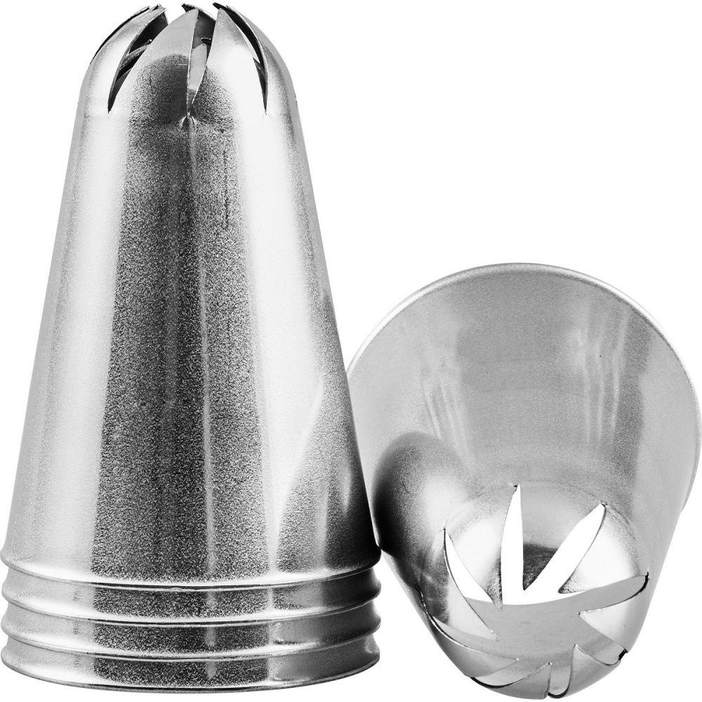 Состав: нержавеющая сталь Размеры: высота 45мм Предназначены для отсадки различных кондитерских масс из кондитерского мешка, придают изделию вид и размер (например для отсадки печенья на лист для выпечки). С помощью насадок декорируют торты и пирожные взбитыми сливками, различными кремами /S888/