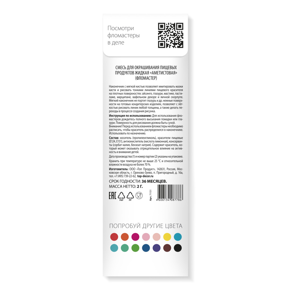 Состав продукта: Носитель (пропиленгликоль), красители пищевые (Е124,Е151 ), антиокислитель (кислота лимонная), консерванты (сорбат калия, бензат натрия).