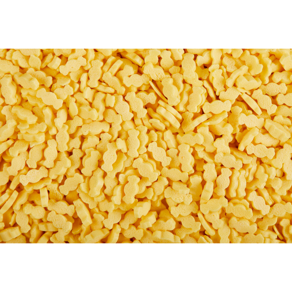 Состав продукта: Сахар, мука рисовая, масло пальмовое, носитель (Е1422), декстроза, загустители (Е415, Е466), эмульгатор (лецитин соевый), глазирователь (шеллак), красители (в ассортименте), ароматизатор "Ванилин".