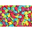Состав продукта: Сахар, мука рисовая, масло пальмовое, носитель (Е1422), декстроза, загустители (Е415, Е466), эмульгатор (лецитин соевый), глазирователь (шеллак), красители (Е102, Е120, Е122, Е133), ароматизатор "Ванилин", антиокислители (аскорбиновая кислота, Е306). Возможно наличие следов глютена. Содержат красители, которые могут оказывать отрицательное влияние на активность и внимание детей.