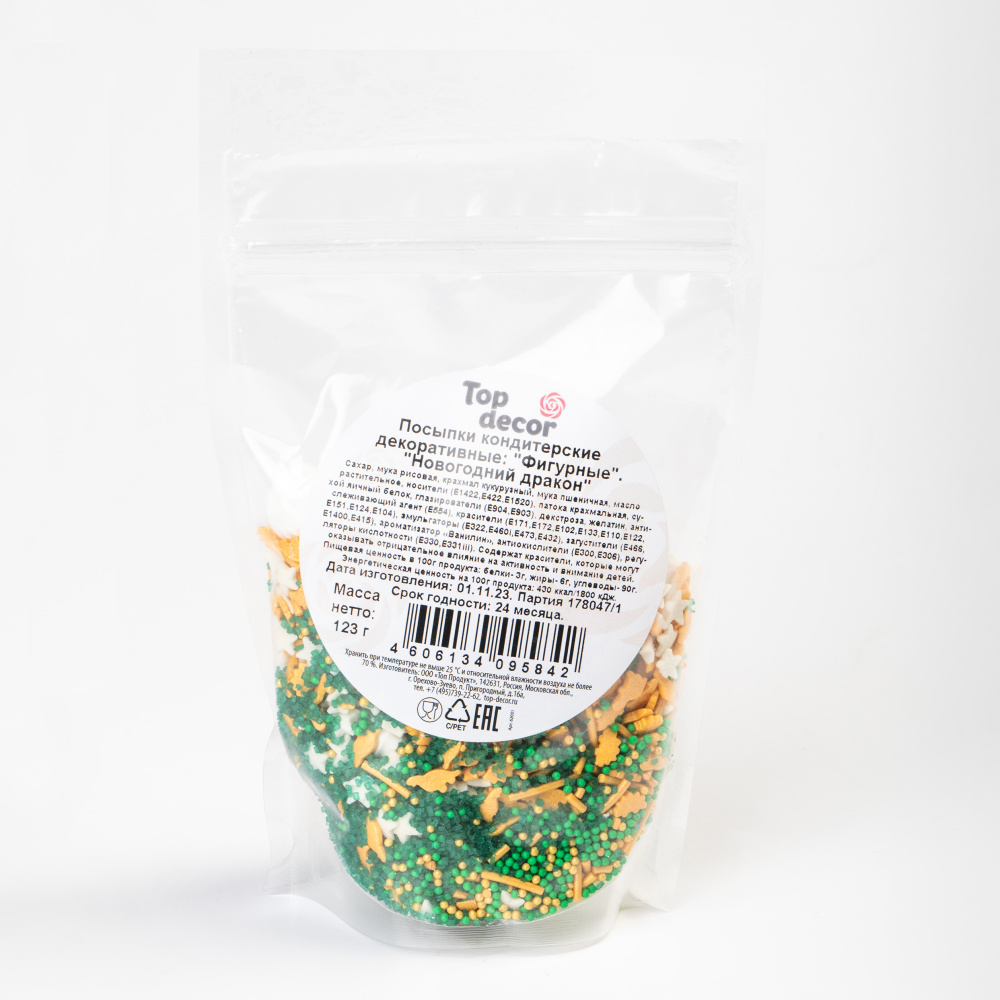 Состав продукта: Сахар, мука рисовая, масло пальмовое, носитель (Е1422), декстроза, загустители (Е415, Е466), эмульгатор (лецитин соевый), глазирователь (шеллак), красители (Е102, Е110, Е122, Е133, Е151, Е171, Е172), ароматизатор "Ванилин". Возможно наличие следов глютена. Содержат красители, которые могут оказывать отрицательное влияние на активность и внимание детей.