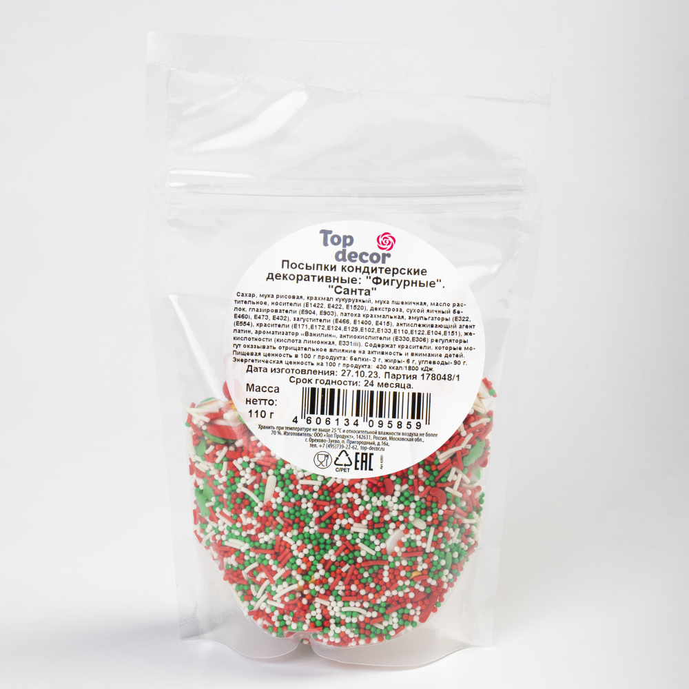 Состав продукта: сахар, патока крахмальная, сухой яичный белок, загустители (Е466, Е1422), желатин, эмульгатор (Е473), масло растительное (триглицериды со средней длиной цепи), регулятор кислотности (кислота лимонная), красители (Е102, Е104, Е110, Е124, Е129, Е133, Е151), носители (глицерин, пропилегликоль). Содержат красители, которые могут оказывать отрицательное влияние на активность и внимание детей.