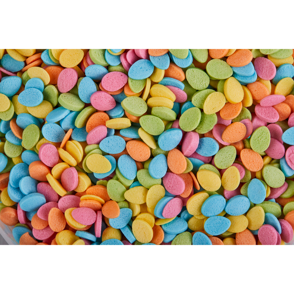 Состав продукта: Сахар, мука рисовая, масло пальмовое, носитель (Е1422), декстроза, загустители (Е415, Е466), эмульгатор (лецитин соевый), глазирователь (шеллак), красители (Е102, Е110, Е120, Е133), ароматизатор "Ванилин". Возможно наличие следов глютена. Содержат красители, которые могут оказывать отрицательное влияние на активность и внимание детей.