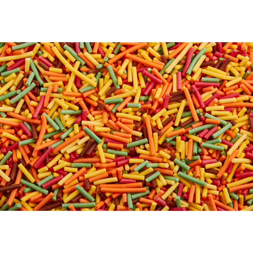 Сахарная вермишель — посыпка толщиной 1,2-1,5 мм на основе сахара и рисовой муки. Используется как самостоятельный декор, элемент композиции, а также для создания фактуры (имитации травы, шерсти и т.д). Применяется на сливочном, масляном, творожном, белковом креме, кондитерских глазурях, желейных и мармеладных массах, на шоколаде и мастике. Вермишель подходит для декора верхней и боковой поверхности десерта. Посыпку также можно добавлять внутрь изделия (например, в леденцы). Специальная глазировка не дает цвету посыпок мигрировать на декорируемую поверхность. Продаётся в пакете по 0,120 кг.