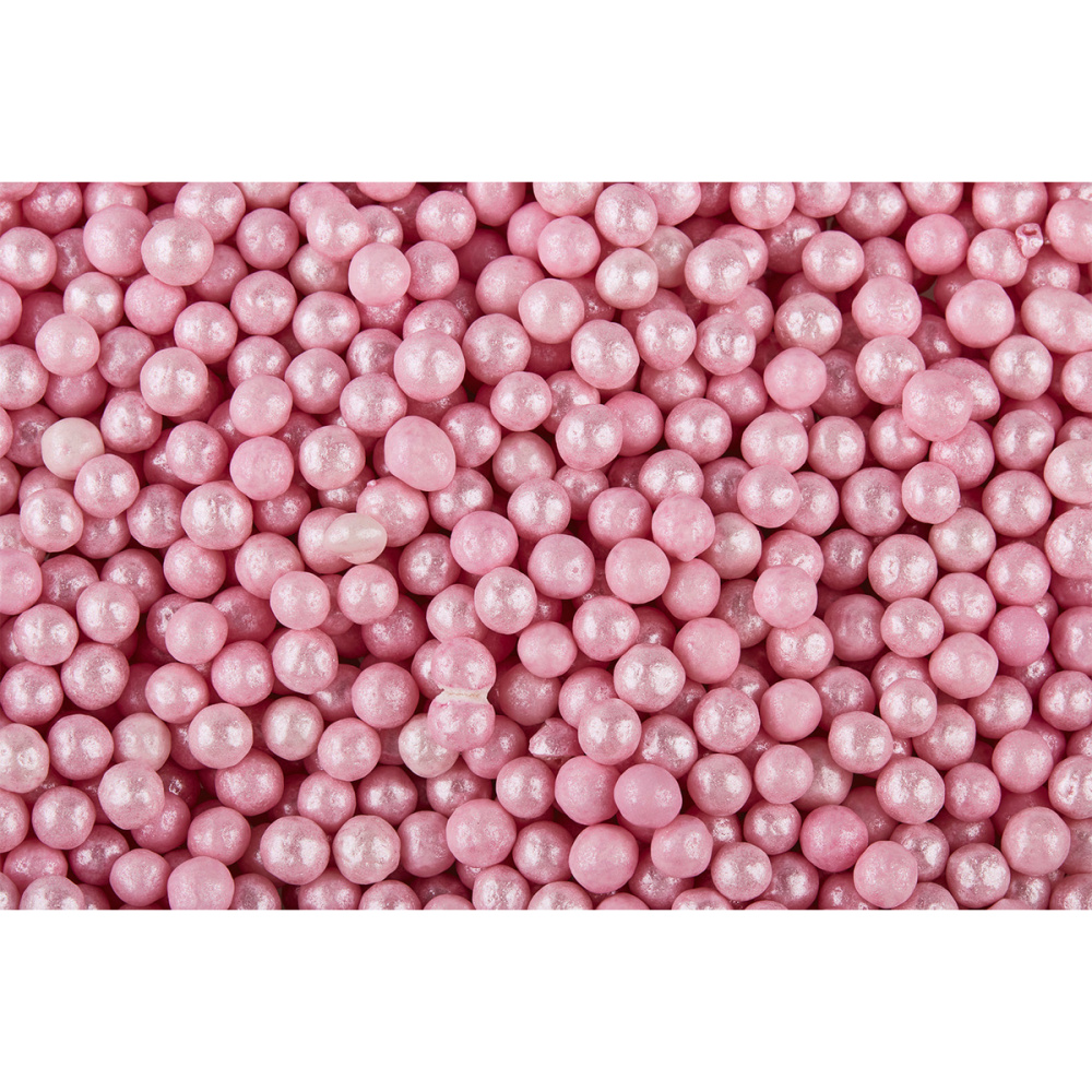 Шарики «Жемчуг» — это посыпки с мягкой сердцевиной из воздушного экструзионного риса и плотной сахарной оболочкой. Шарики покрыты перламутровым глянцем, который придает не только схожесть с жемчугом, но и устойчивость к влаге. Подходят для декора верхней и боковой поверхности десерта из шоколада, мастики. Используются на сливочном, масляном, творожном, белковом креме, кондитерских глазурях, помадке, желе. Продаются в упаковке по 0,100 кг.