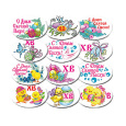 Состав: представляют собой тонкие пластинки вафельной * бумаги*,изготовлены на основе рисовой муки c нанесенными на них красочными рисунками. Применение: Вафельные картинки различной формы и размера применяются для украшения кондитерских изделий - тортов, пирожных, куличей , пряников, печенья , а также для декорирования десертов и мороженого.