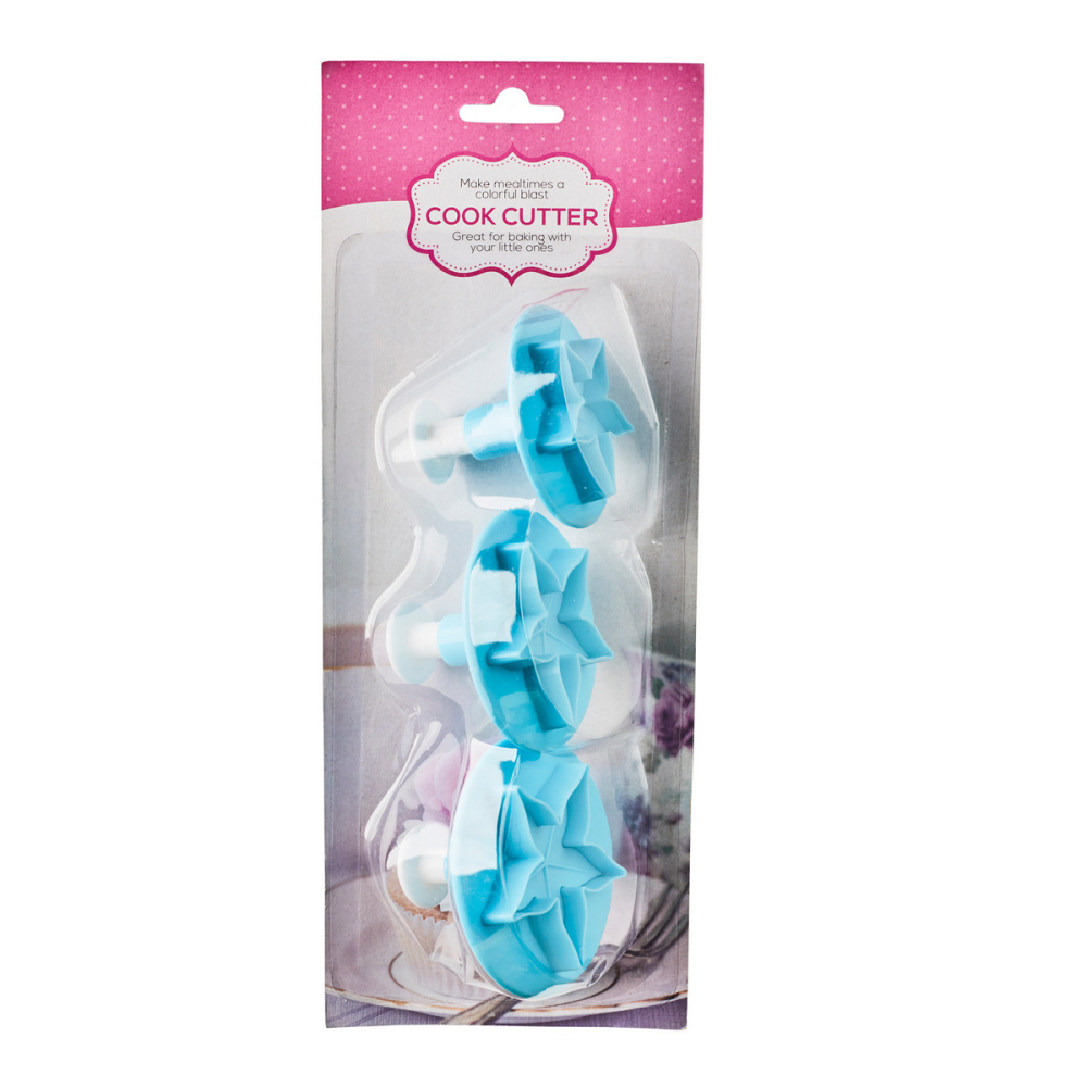 Вырубки предназначены для изготовления декора из сахарной мастики и марципана, позволяют быстро украсить любое кондитерское изделие. При работе с сахарной мастикой рекомендуется использовать крахмал или мелкодисперсную сахарную пудру во избежание прилипания массы к вырубке. Способ применения: раскатайте сахарную мастику в пласт нужной толщины, вырежьте заготовку вырубкой, не нажимая на выталкиватель, перенесите заготовку на мягкий коврик. Вытолкните заготовку, нажимая на выталкиватель, тем самым придавая заготовке рельеф. В наборе 3 вырубки с размером готовых изделий: 40мм, 50мм, 60мм.