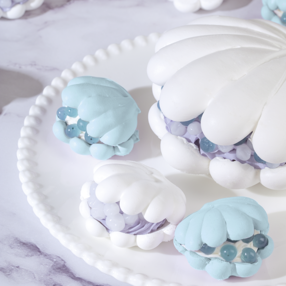 Десерт Павлова "Ракушка" с Джус Бабл со вкусом голубики и йогурта - утончённый и при этом простой в приготовлении десерт, который удивит не только вкусом, но и подачей. Хрупкая меренга в виде ракушки создаётся легко и быстро с помощью сухой смеси для меренг от Top Decor — идеальное решение для тех, кто ценит качество и удобство.