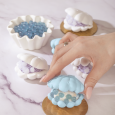 Внутри прячется нежный сливочный крем и джус бабл со вкусом йогурта и голубики — яркие жемчужинки, которые лопаются с легким освежающим эффектом, добавляя сливочно-ягодную кислинку. Этот десерт — как летняя морская фантазия, лёгкая, освежающая и изысканная.