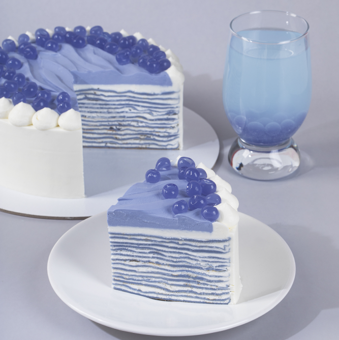 Добавьте нотку современности и креатива в классический блинный торт с помощью шариков джус бабл со вкусом голубики.