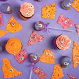 Десерты в тематике Хэллоуина, украшенные медальонами "Глазки", "Глазки / Реснички", "Глазки голубые" и черными посыпками в виде летучих мышей, вермишели и шариков, создают неповторимую атмосферу праздника. Использование пищевых красителей в оранжевом и фиолетовом цветах добавляет яркости и разнообразия в дизайн десертов. Позвольте себе насладиться этими уникальными сладостями и внести долю веселья и загадочности Хэллоуина в свой стол.