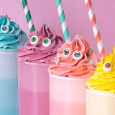 Особое внимание уделяется декору с помощью сахарных мини-медальонов "Глазки цветные" и различных посыпок от Top Decor. Это придает коктейлям игривость и уникальный характер. Кроме того, в каждом коктейле используются разноцветные трубочки, которые добавляют веселых и ярких нот.