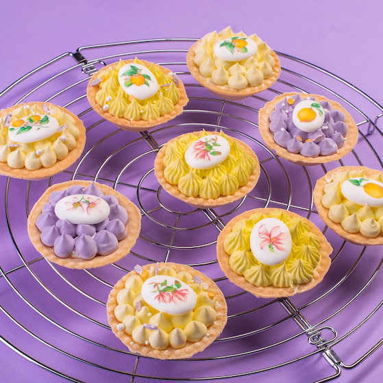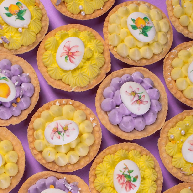 Идея декорирования "Лимонные тарталетки" представляет собой лимонные тарталетки с кремом в лимонном и ежевичном оттенке. Тарталетки украшены сахарными медальонами "Лимоны" от Top Decor, которые добавляют уникальные детали и акценты на поверхность тарталеток. Дополнительно, на тарталетках присутствуют разнообразные посыпки от Top Decor, создающие интересные текстурные и цветовые элементы. Эта идея декорирования позволяет создать яркие и освежающие лимонные тарталетки, добавляя им визуальную привлекательность и вкусовое разнообразие.