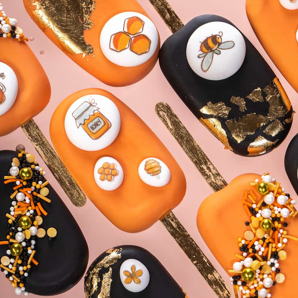 Идея декорирования "Медовое эскимо" представляет собой эскимо в теплых медовых цветах, украшенные разнообразными посыпками, сахарными медальонами "Мед" и мини-медальонами "Медовик" от Top Decor. Эти сладкие десерты привлекательно смотрятся и обладают неповторимым медовым вкусом, который порадует любителей сладостей.