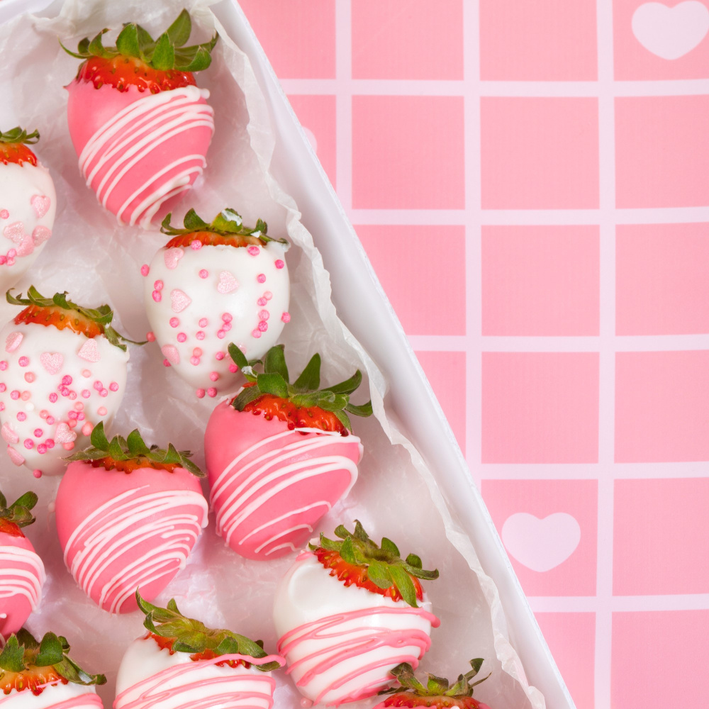 Клубника покрыта новой жиросодержащей помадкой помадкой Top Decor, а также украшена сахарным декором в нежных оттенках и посыпками в виде розовых перламутровых шариков. Такая идея придется по душе каждой девушке и подарит ей самые теплые и незабываемые эмоции.