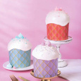 Идея "Оригами" представляет собой изысканные куличи в форме оригами, которые не оставят равнодушными никого. Каждый кулич покрыт белой помадкой и украшен рифлеными сахарными фигурками безе, что придает им неповторимый шарм и элегантность. Формы куличей доступны в трех цветах: сиреневый, голубой и красной, что позволяет подобрать идеальный цветовой вариант для любого мероприятия.