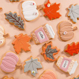 Некоторые из этих печенек дополнительно украшены нашими мини-медальонами "Осень". Эти уникальные аксессуары добавляют нотку красоты и оригинальности к каждому печенью.