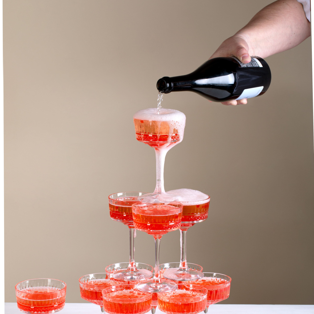 Пирамида из шампанского с джус бабл — эффектная и современная праздничная композиция, которая станет ярким акцентом любого мероприятия. Идеально подходит для выпускных, корпоративов, свадеб и других торжеств.