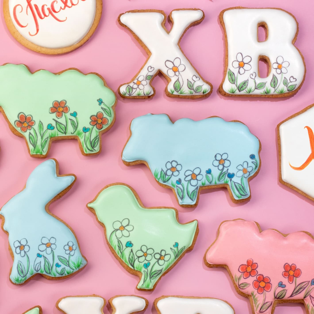 Идея "Пряники и пасхальные символы" представляет собой набор пряников в форме кроликов, цыплят и букв ХВ, украшенных рисунками цветов, выполненными пищевыми фломастерами Top Decor. Каждый пряник покрыт айсингом, окрашенным уникальными красителями компании. Такой набор прекрасно подойдет для украшения пасхальной корзины, праздничного стола или для дарения близким и друзьям в качестве подарка. Наслаждайтесь вкусом пряников и пасхальной атмосферой!