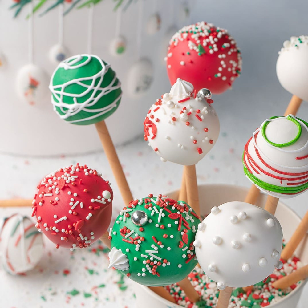 Идея декорирования "Рождественские кейк-попсы" представляет собой кейк-попсы, оформленные в рождественском стиле с использованием красных, белых и зеленых цветов, а также сахарных медальонов с изображением новогодних игрушек и посыпок от Top Decor. На изображении видно, как каждый кейк-попс превращается в маленькую рождественскую композицию. Они украшены сахарными медальонами в форме новогодних игрушек, которые добавляют праздничный акцент и создают атмосферу Рождества. Посыпки от Top Decor дополняют декор, придавая кейк-попсам яркость и уникальный вид. Рождественские кейк-попсы станут великолепным угощением на праздничном столе и прекрасным способом порадовать себя и гостей во время рождественских праздников.