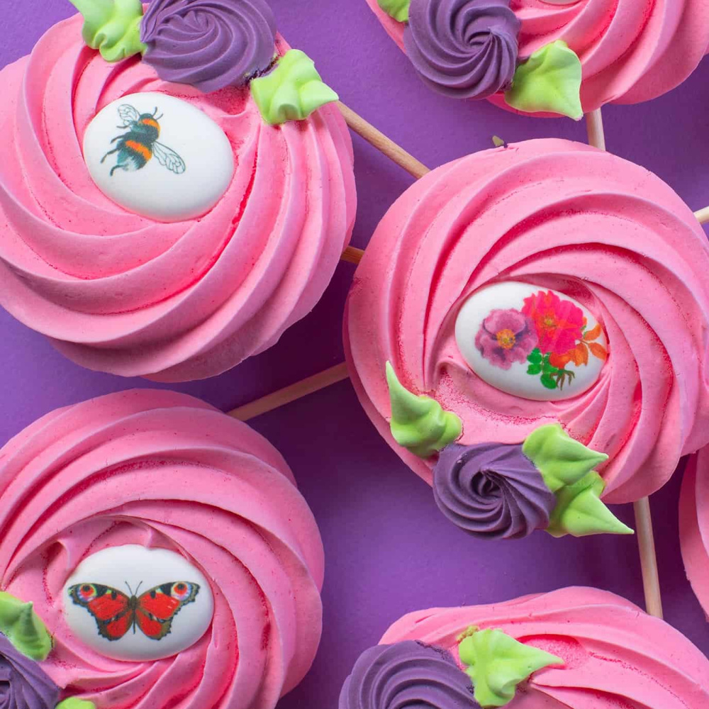 Идея декорирования "Розовые безе на палочке" представляет собой привлекательные десерты-безе, которые привлекают внимание своим нежным розовым оттенком. На изображении видно, как каждое безе украшено сахарными медальонами "Шиповник", добавляющими эстетическое очарование. Дополнительные элементы декора включают посыпки и пищевые красители от Top Decor, которые придают безе дополнительные цветовые акценты и текстуру. Благодаря уникальному оформлению на палочках, эти безе становятся удобными для употребления и создают игривую и аппетитную атмосферу. Идея декорирования "Розовые безе на палочке" позволяет насладиться нежными и хрустящими десертами, которые визуально и вкусовыми качествами радуют гурманов.