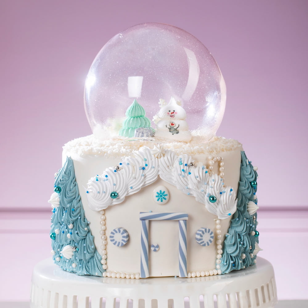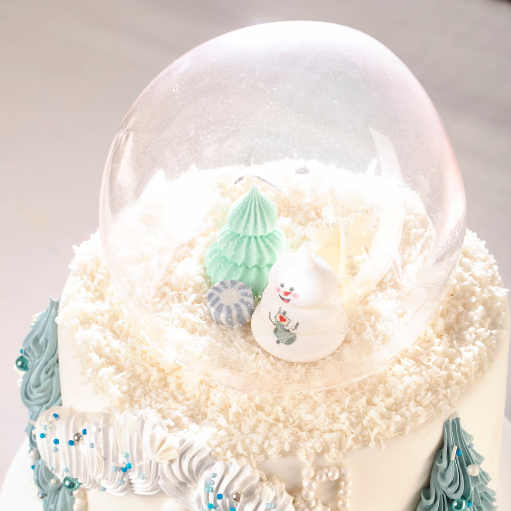 Идея декорирования "Торт с стеклянным шаром" представляет собой торт, на верхней части которого размещается стеклянный шар, изготовленный из мальтита, создавая эффект прозрачности и оригинальности. Торт также украшен элегантной елочкой из безе, привлекательной сахарной фигуркой "Снеговичок" и мини-медальонами в виде "Снежинок". Дополнительно, используются различные посыпки от Top Decor, придающие торту дополнительную текстуру и декоративность.