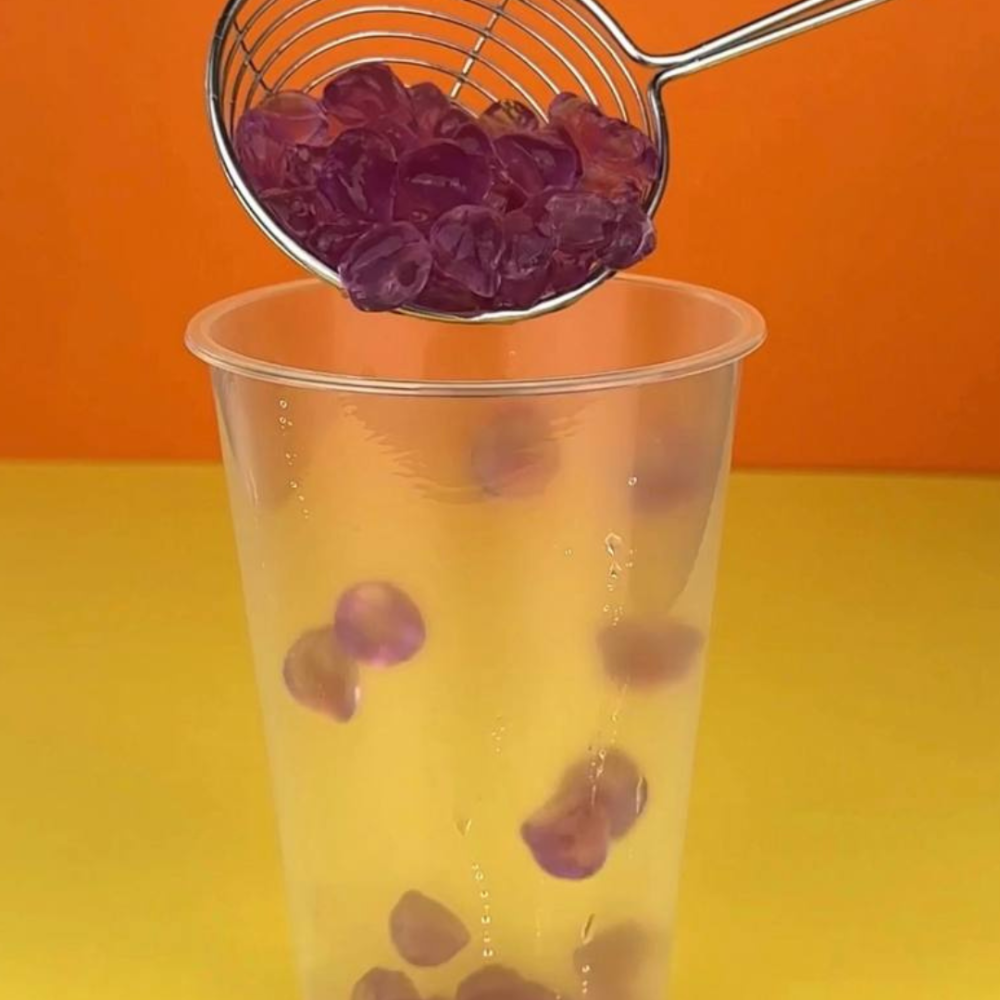 Crystal balls - небольшие, полупрозрачные желейные шарики в сиропе, juice balls - разноцветные лопающиеся шарики с жидкой фруктовой начинкой. Такие шарики можно добавлять в выпечку, десерты, мороженое, коктейли, чай, кофе и другие напитки.