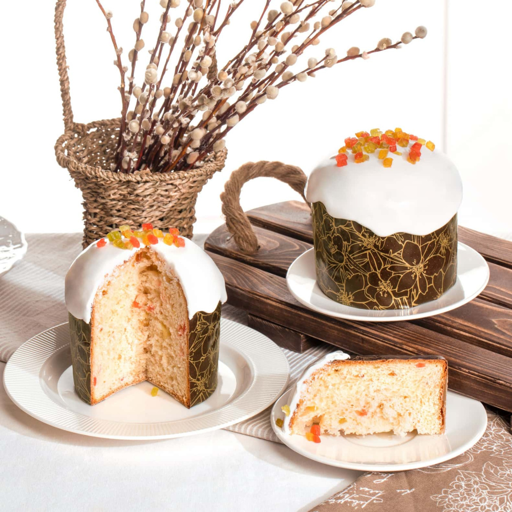 Идея "Цвет миндаля" вдохновлена природной красотой и нежностью. Куличи, выполненные в этом стиле, украшены кандированными цукатами. Белая помадка, которой они покрыты, придает куличам элегантный вид. Эта идея позволит вам создать прекрасный пасхальный стол, который порадует не только взгляд, но и вкус.