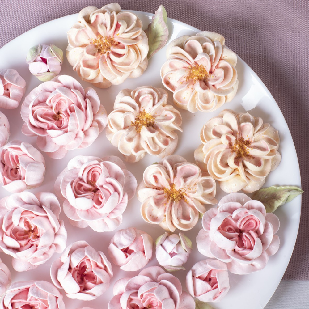 Для создания пышных бутонов цветов и листьев Top Decor предлагает большое разнообразие кондитерских насадок: насадка “Роза 127”, насадка “Листик 114”, насадка “Листик 65”, насадка “яблоневый цвет 161. Для придания природного оттенка зефирным цветам в этой идее декорирования использовались гелевые водорастворимые красители: “королевская синяя”, “фуксия”, “арбузная”, “лаймовая”, “апельсиновая”.